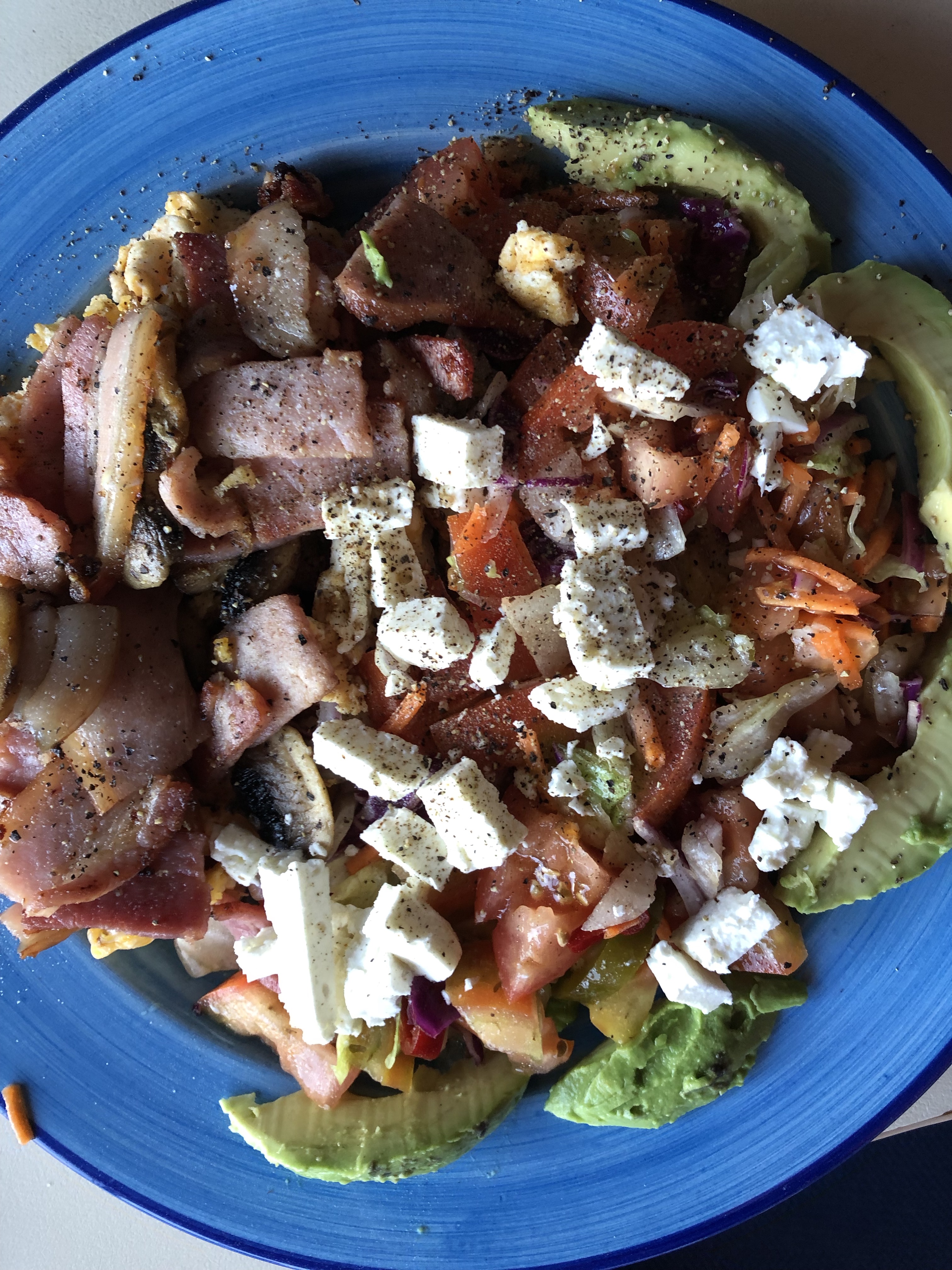 Tonight i had bacon, fresh salad, goats cheese that is so good and avocado i put a dash off virgin oil to give it good colour with salad dressing followed by drinking half a litre of water. You will find write ups on the Keto Diet on google its worth looking at again this program suits me and life style.