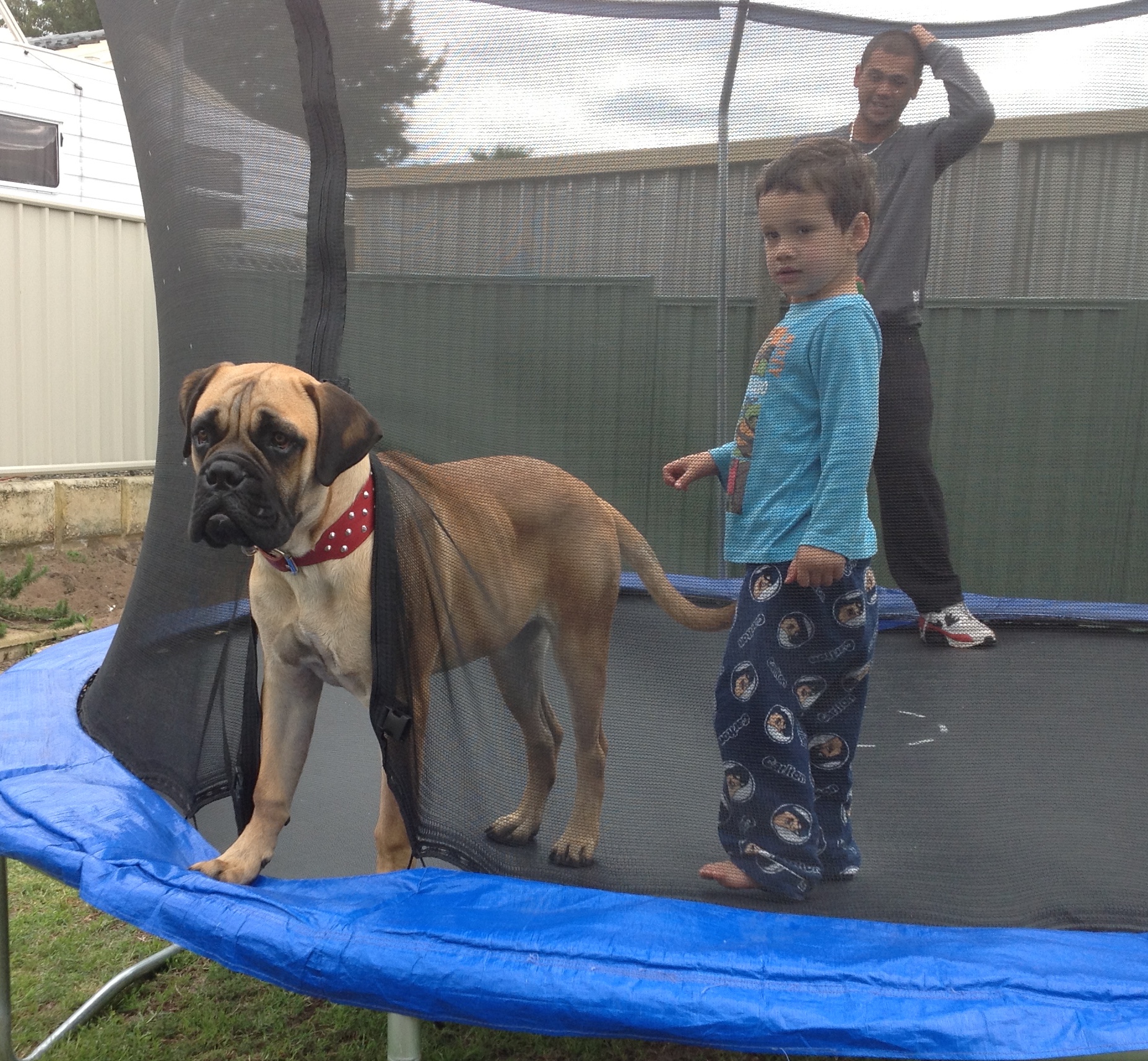 Kato and Odin checking out the trampoline.