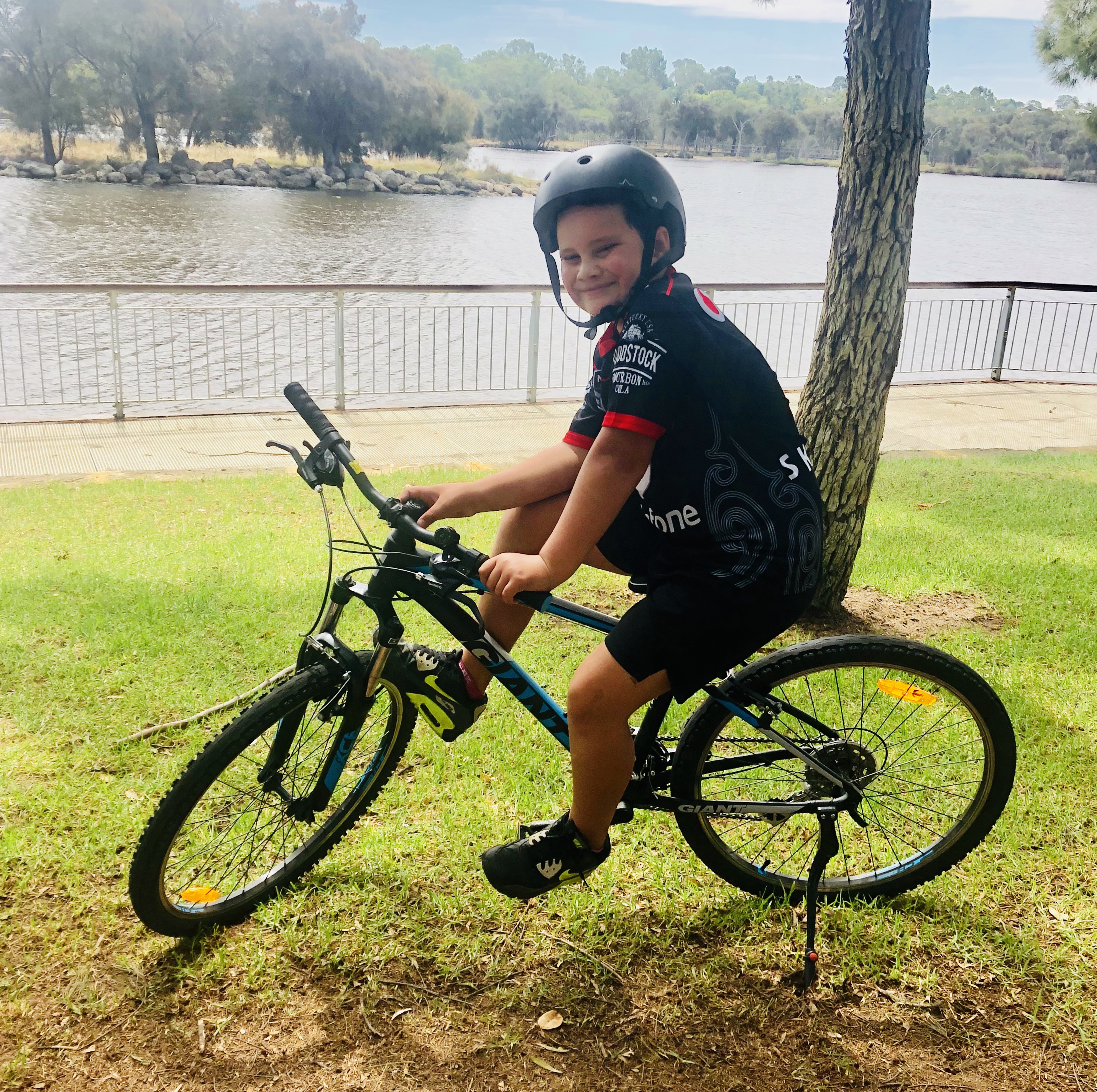 Kado on his mountain bike.