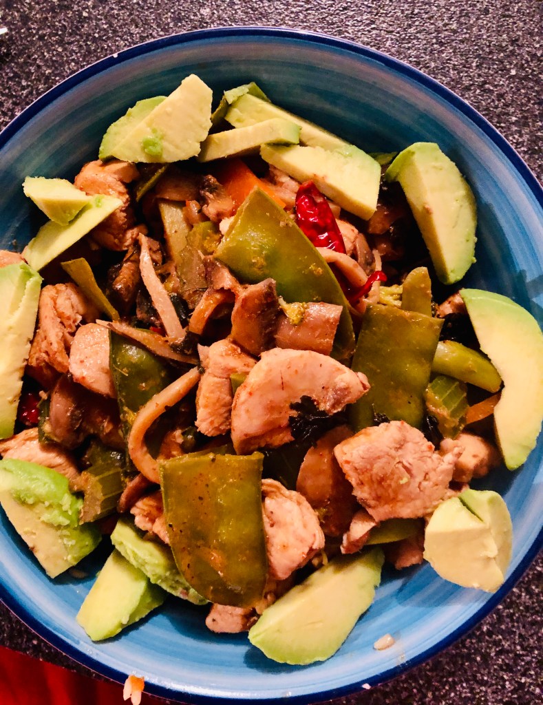 An hour cruises past as i watch the pan do it’s work after adding the ingredients followed by the veggies an then the chicken which i three quarterly cooked before adding.. let the pan do its magic with a gentle stir every 5 minutes for 20 minutes.