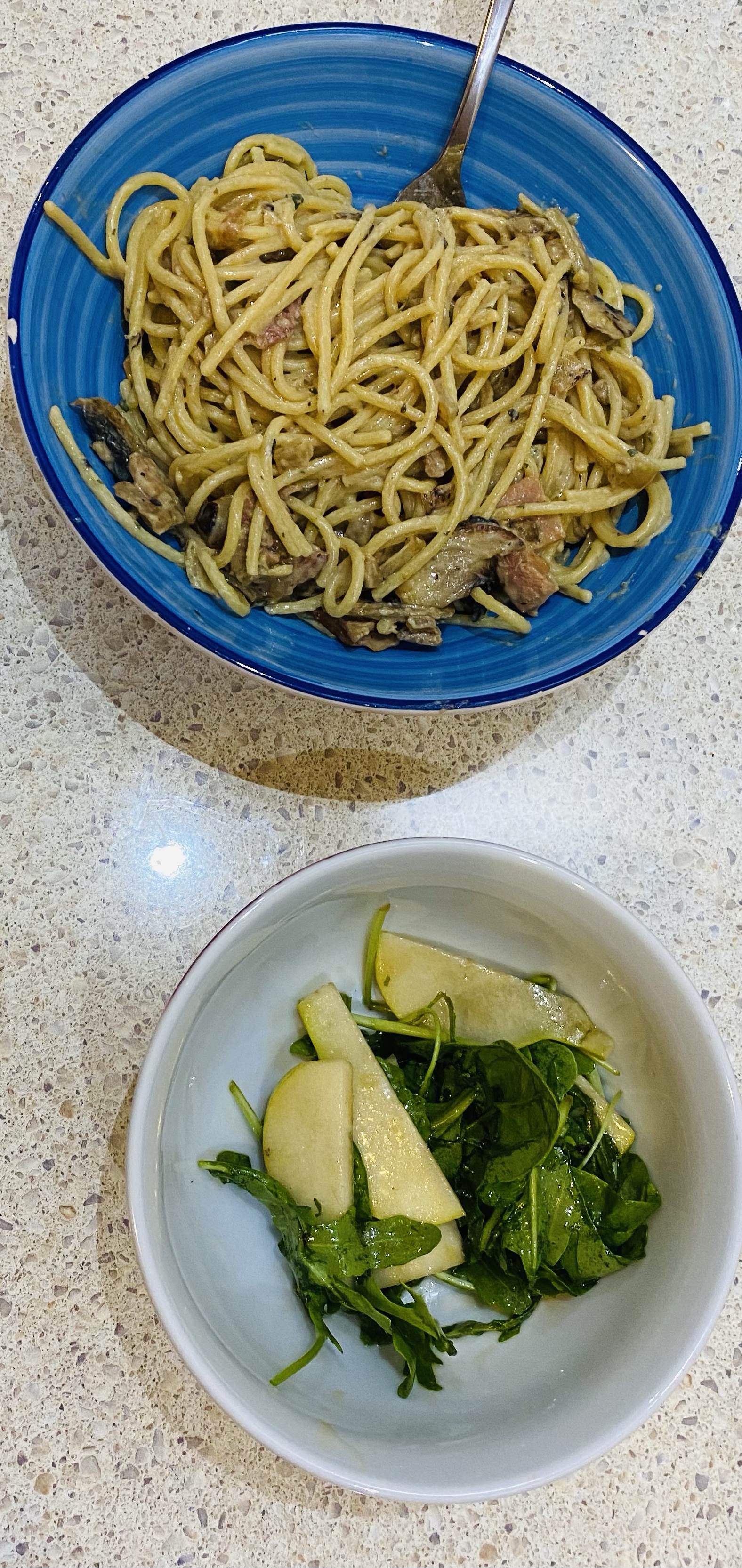 Pasta with a side dish of salad went down a treat excellent.