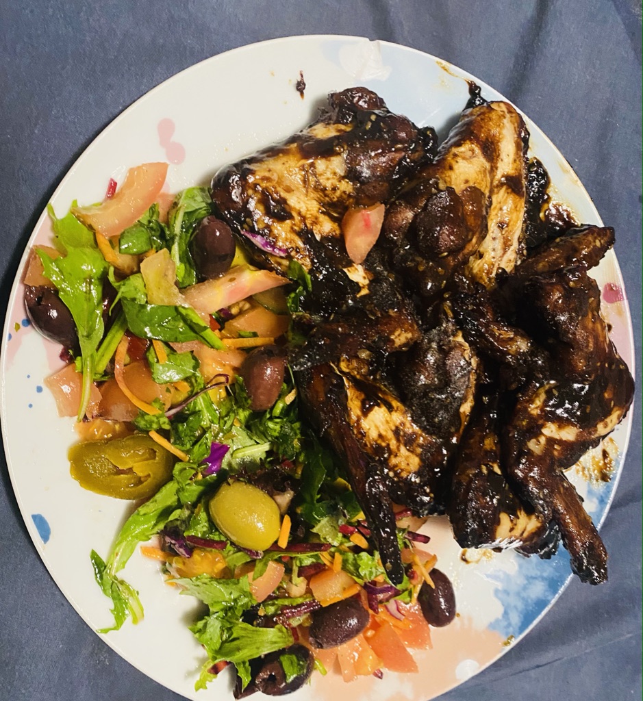 Give the man meat Haha Pork and salad presentation average but it went down well lol.